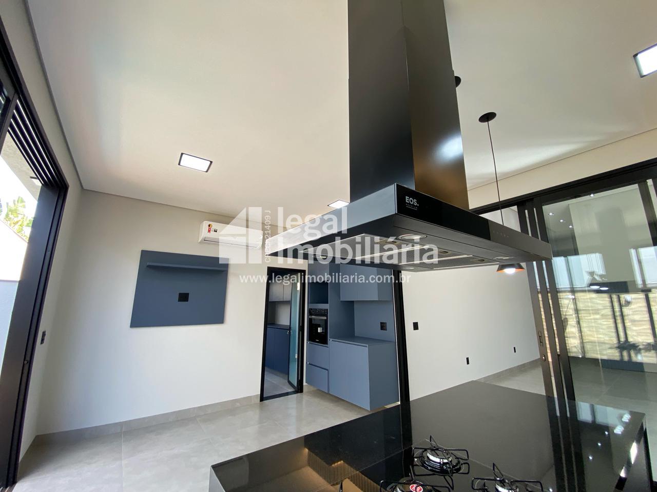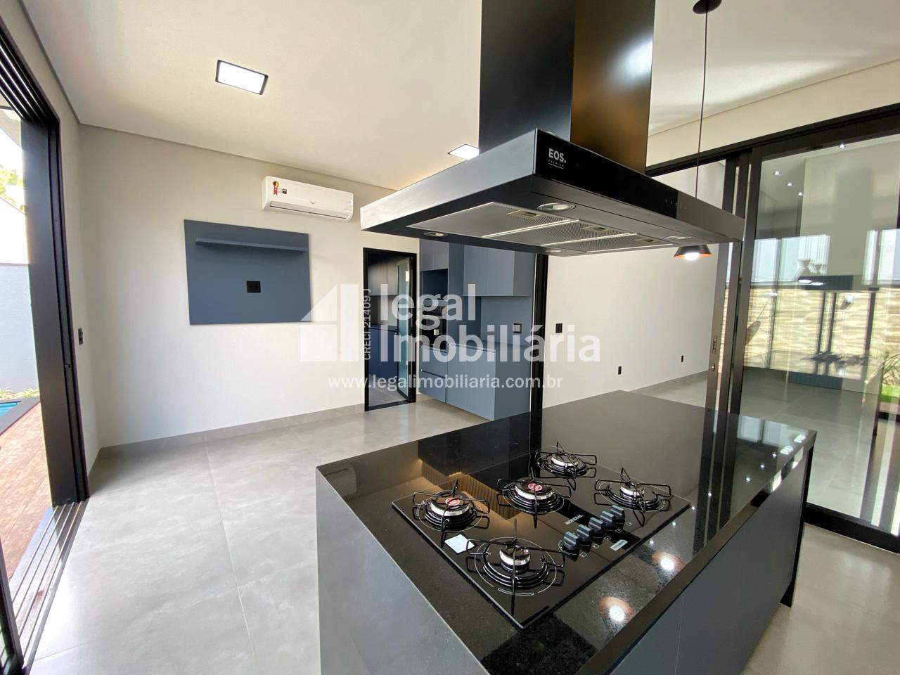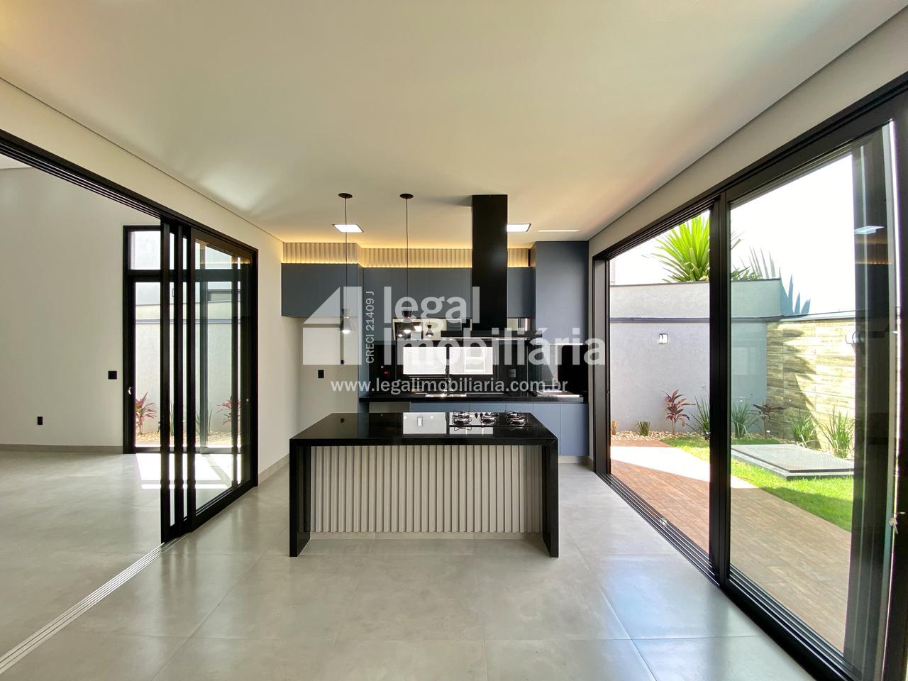 Casa Moderna à Venda no Quinta dos Ventos Ribeirão Preto Encante-se com esta residência contemporânea e sofisticada, projetada para oferecer conforto, elegância e tecnologia em cada detalhe. 3 suítes amplas, todas com armários planejados, janelas automáticas com blackout e pontos de ar-condicionado Sala com pé direito alto, integrada e com portas de correr que permitem dividir os ambientes conforme sua necessidade Cozinha completa, equipada com cooktop, forno, coifa e churrasqueira, perfeita para receber amigos e família Escritório moderno e lavabo elegante, ideais para quem trabalha em casa Área de serviço funcional com banheiro de apoio