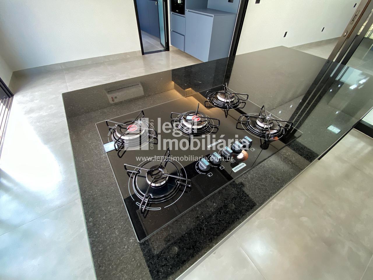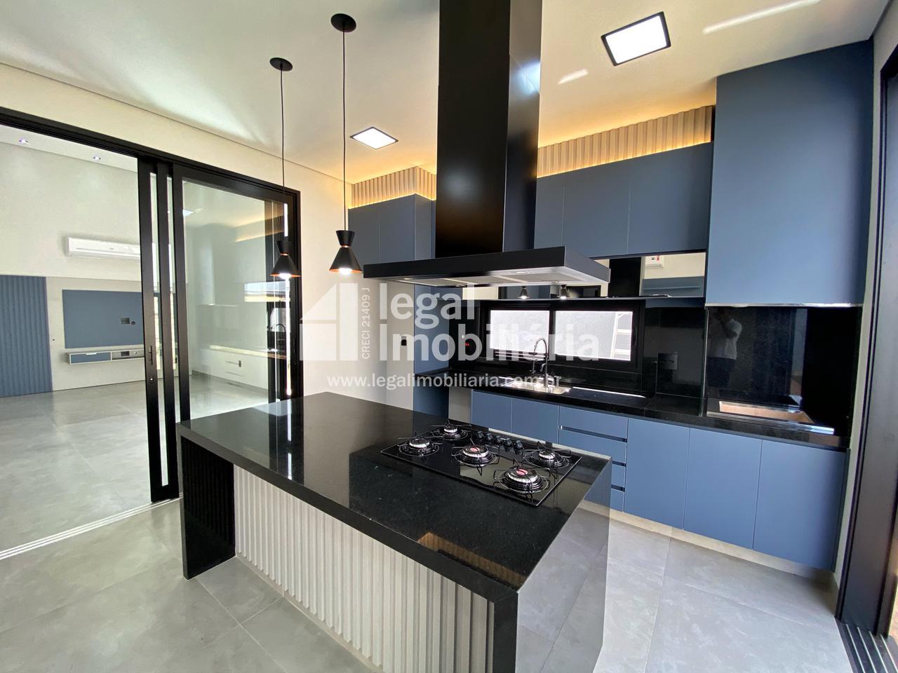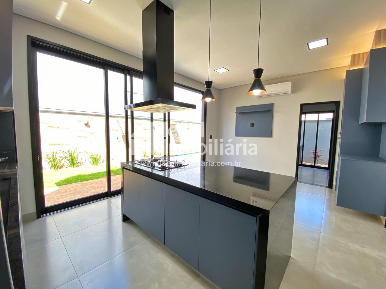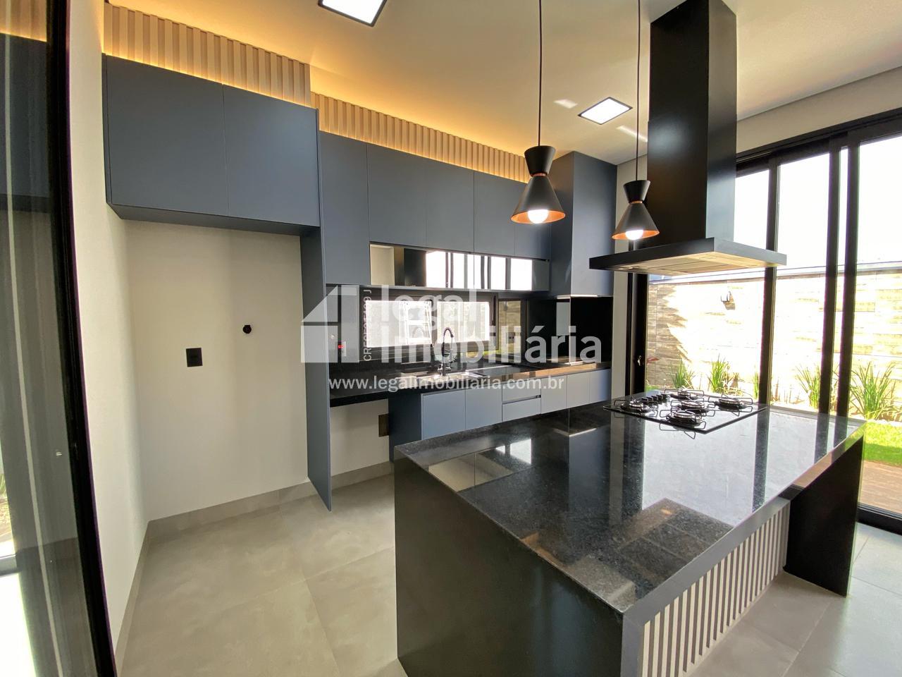 Casa Moderna à Venda no Quinta dos Ventos Ribeirão Preto Encante-se com esta residência contemporânea e sofisticada, projetada para oferecer conforto, elegância e tecnologia em cada detalhe. 3 suítes amplas, todas com armários planejados, janelas automáticas com blackout e pontos de ar-condicionado Sala com pé direito alto, integrada e com portas de correr que permitem dividir os ambientes conforme sua necessidade Cozinha completa, equipada com cooktop, forno, coifa e churrasqueira, perfeita para receber amigos e família Escritório moderno e lavabo elegante, ideais para quem trabalha em casa Área de serviço funcional com banheiro de apoio